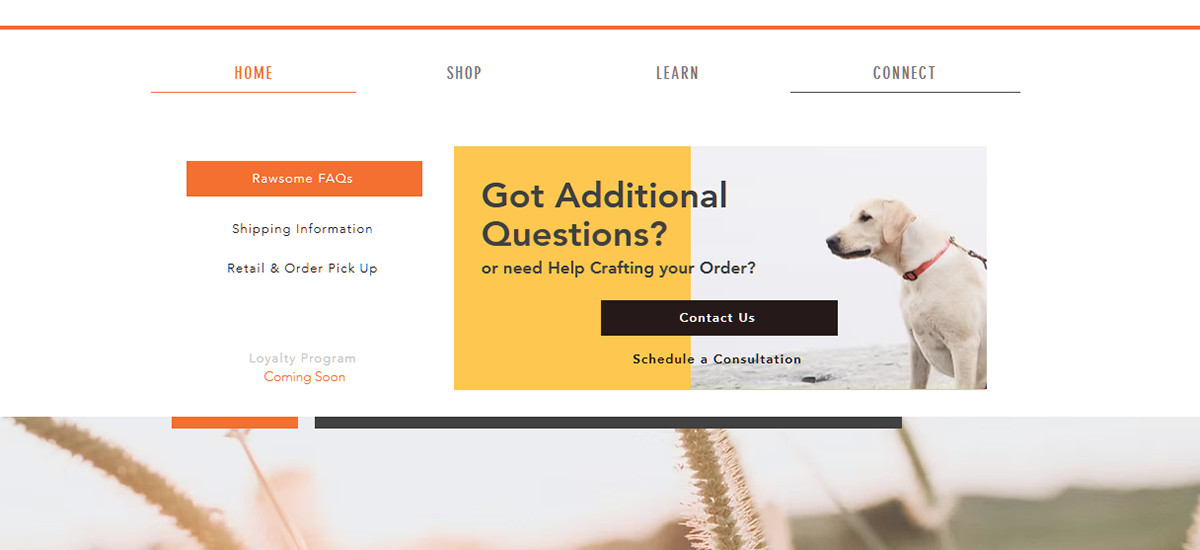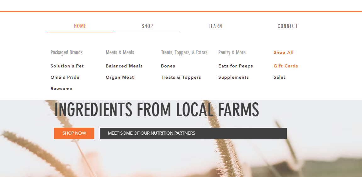 Nothing about Rawsome is broad strokes, generalization, or 'close enough' and this is reflected in many of the implemented design elements. From a drop-down database for each state outlining average shipping times and local shipping deals, a large mega menu that simplifies the site into 3 parts (Shop, Learn, Connect), to custom-coded calculators to help the Rawsome help and empower their customers in every step.